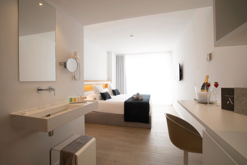 Die Zimmer im Hotel Anfora Ibiza sind charmant und modern gestaltet. Sie verfügen über eine Dusche/WC, Flachbildschirm, Föhn, Minikühlschrank, Pflegeprodukte, Telefon, Wasserkocher und WLAN. Darüber hinaus gibt es Superior-Zimmer, die größer sind und zusätzlich einen Kaffee-/Teezubereiter bereithalten.