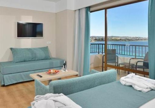 Die rund 21–22 m² grossen Zimmer sind funktional gestaltet: Klimaanlage, Bad/Dusche/WC, Föhn, Safe, kleiner Kühlschrank, Telefon, Sat‑TV, WLAN und ein Balkon gehören zur Ausstattung. Kaffee‑/Teezubereiter erleichtert den Start in den Tag. Meerblick ist je nach gebuchter Kategorie verfügbar.
