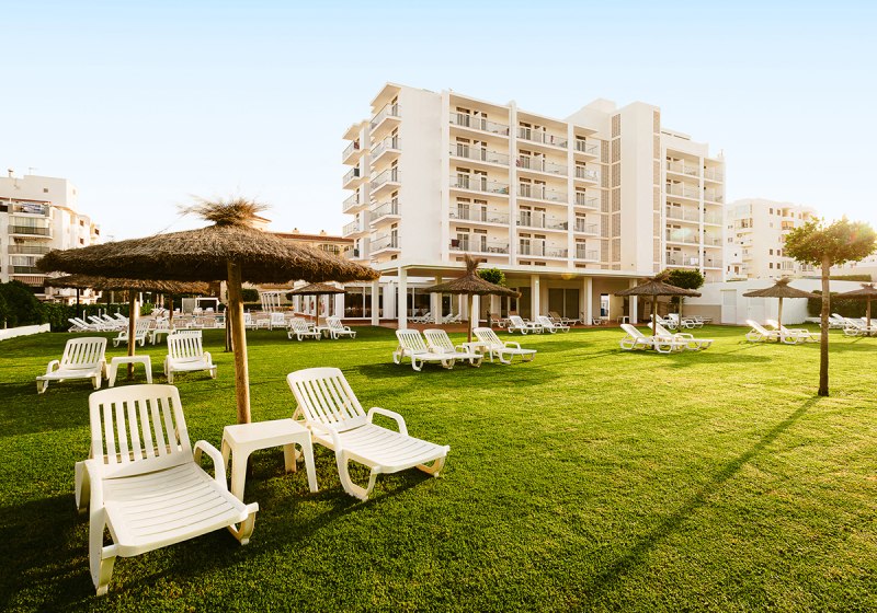 Im Hotel Gran Sol wohnt Ihr nah an der Bucht Caló des Moro, mit dem Sandstrand praktisch vor der Tür. Das Haus wirkt unkompliziert und entspannt: Sonnenliegen auf Terrassen und Liegewiesen, ein großer Außenpool mit integriertem Kinderbecken und kurze Wege zu Bar, Restaurant und Pool-Snackbar. Ihr kommt an, lasst das Gepäck an der 24-Stunden-Rezeption und seid in Minuten im Wasser oder am Strand.