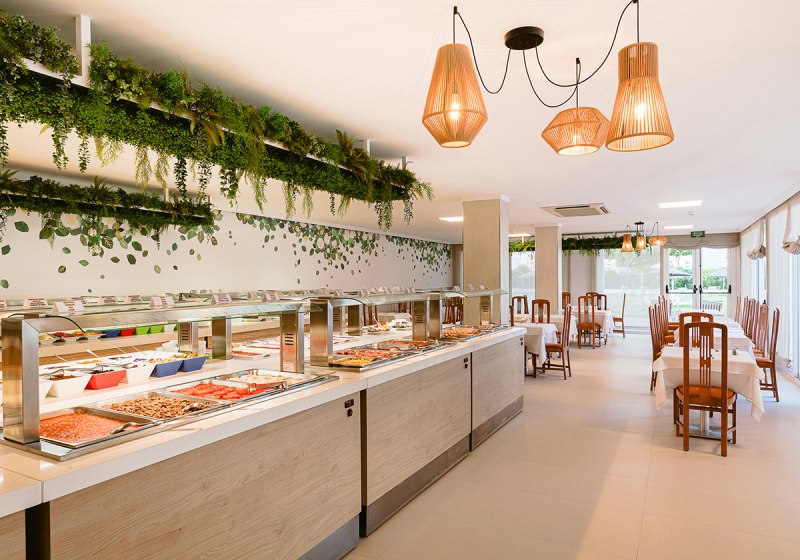 Wer die Wege kurz mag, bleibt mittags an der Pool-/Snackbar und wechselt abends in den Speiseraum. Alternativ bummelt Ihr die 800 Meter ins Zentrum von San Antonio zu weiteren Restaurants. Die Kombination aus planbarer Halbpension und spontanen Snacks funktioniert für Strandtage ebenso wie für späte Rückkehrer vom Sunset-Spaziergang. Getränke holt Ihr Euch unkompliziert an der Bar – entspannt, ohne Umwege.
