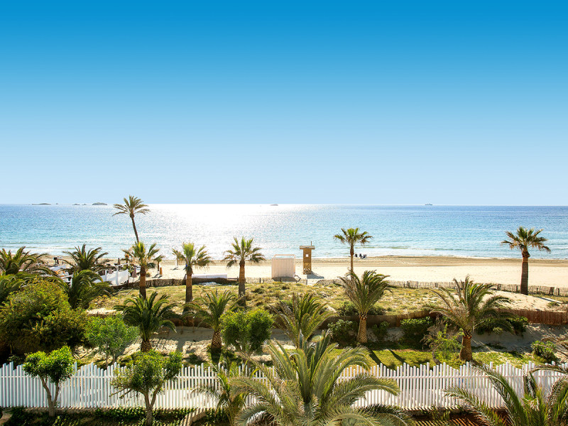Die Lage spricht für sich: direkt am Sandstrand von Playa d’en Bossa, rund 6 km bis zur Altstadt von Ibiza-Stadt und etwa 5 km zum Flughafen. In der Umgebung findet Ihr Bushaltestellen, Supermärkte, Bars und Restaurants. So erreicht Ihr Kultur und Nachtleben schnell, während der Strand unmittelbar vor Euch liegt.