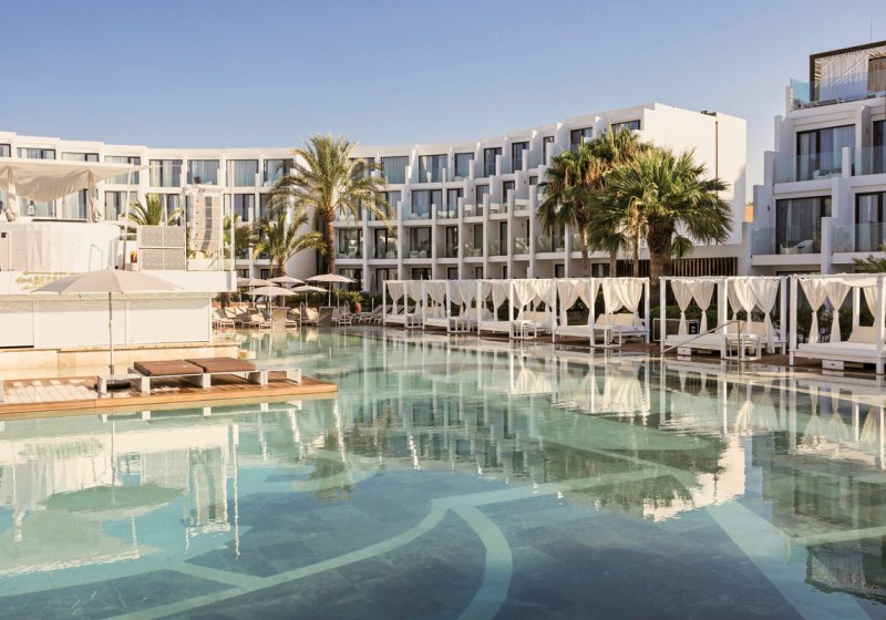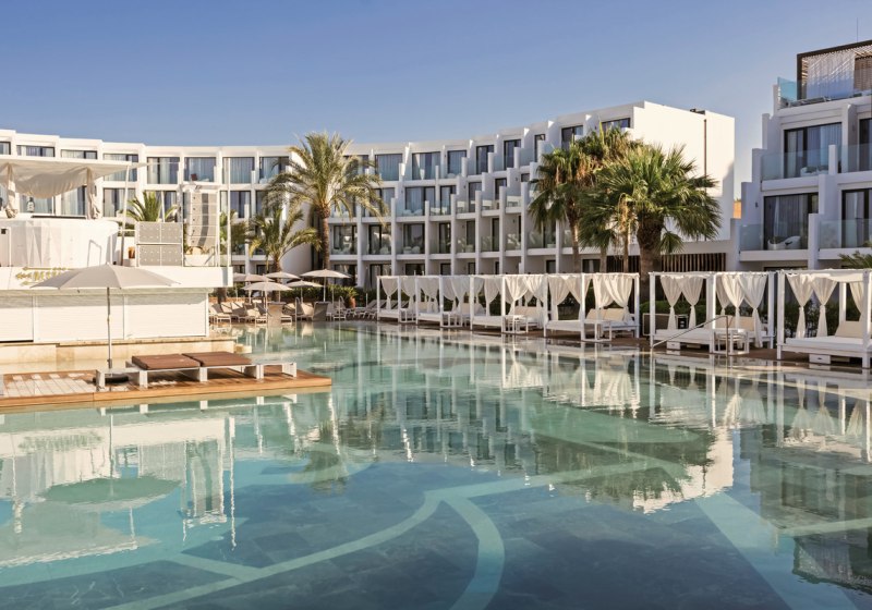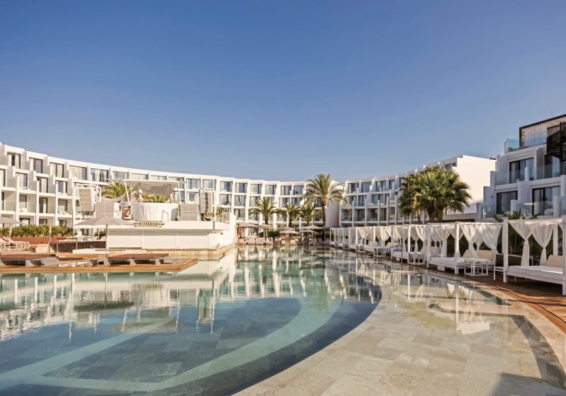 Im The Site Hotel Ibiza lebt Ihr den Rhythmus Ibizas direkt an der Playa d’en Bossa. Das Resort verteilt sich auf sieben Gebäude mit klaren Linien, offenen Lounges und einem Setting, das auf Bewegung, Musik und entspanntes Miteinander ausgelegt ist. Drei Pools, großzügige Gemeinschaftsbereiche und ein durchdachtes Familienkonzept mit Clubs für verschiedene Altersstufen setzen den Ton für lebendige Tage am Meer. WLAN nutzt Ihr im gesamten Hotel gratis, Handtücher holt Ihr Euch bequem per Verleih.