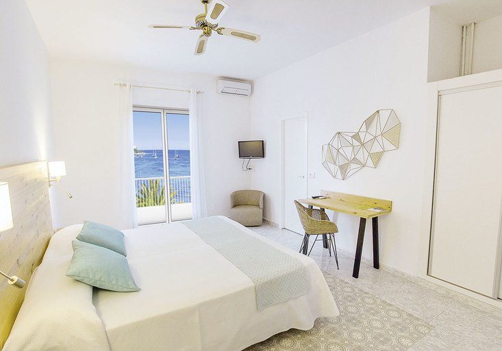 Einige Zimmer verfügen über Balkon, optional lässt sich Meerblick buchen. Bad oder Dusche, WC und Föhn sind Standard; Safe ist verfügbar. Bettenvarianten und Schreibtischlösungen folgen funktionalen Linien. Der gepflegte Zustand spiegelt die Renovierung von 2012. Highlight: Optionale Meerblick-Zimmer und klare Familienlösungen.