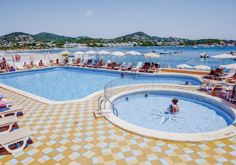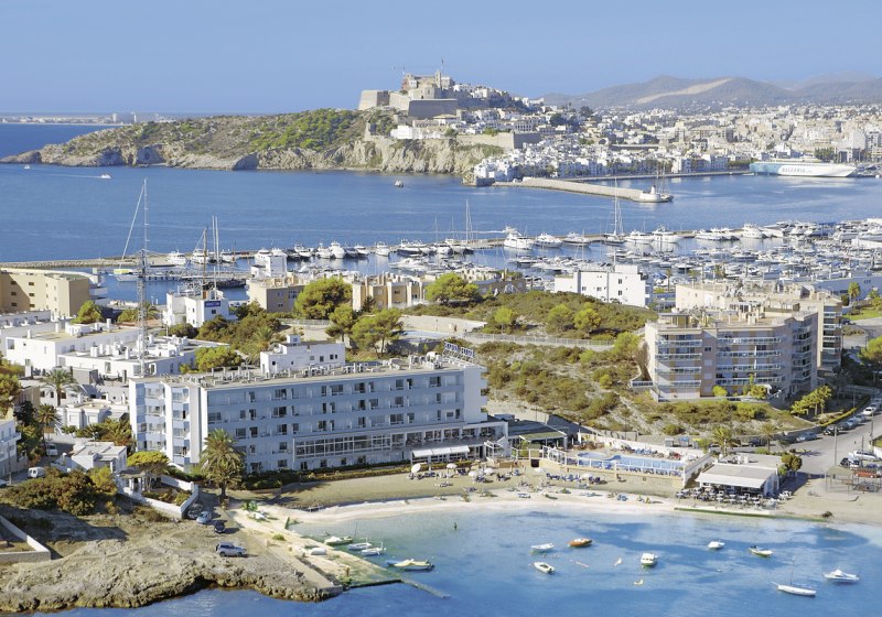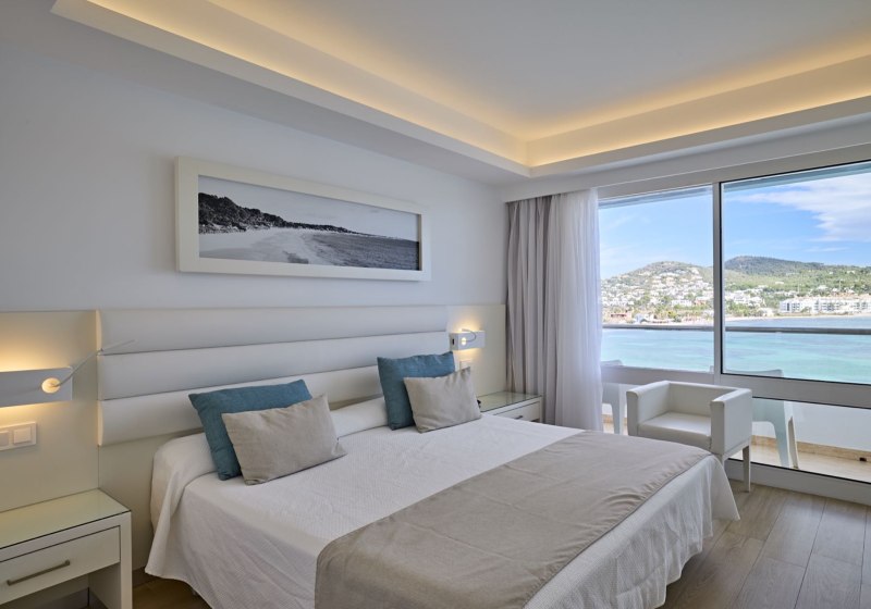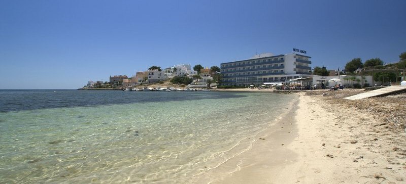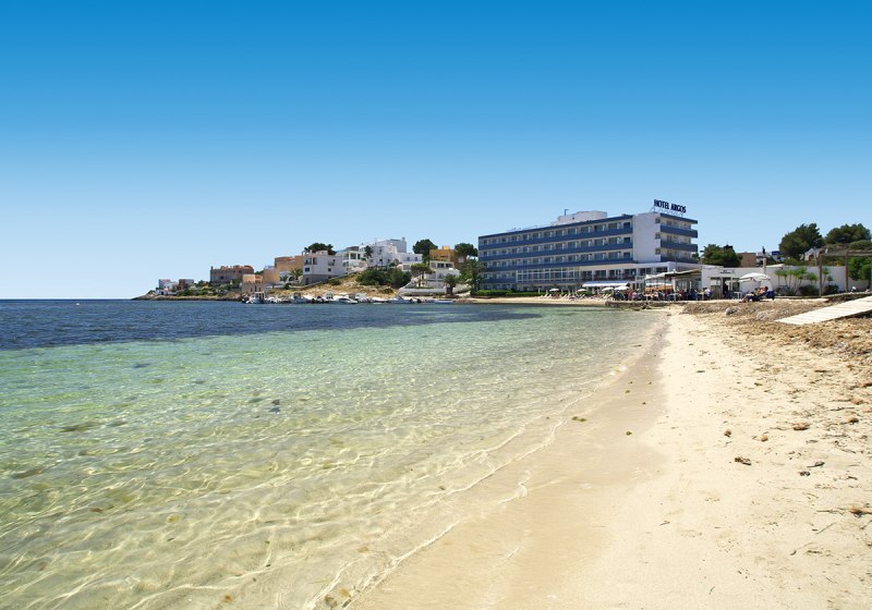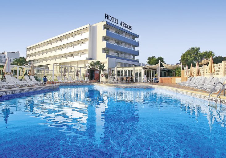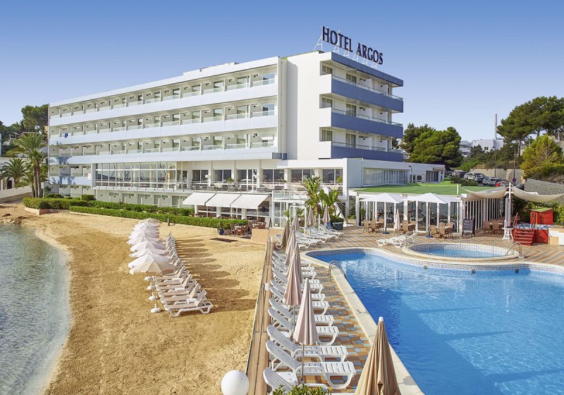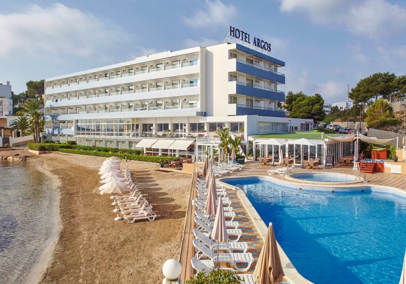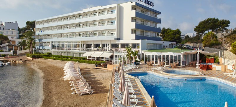 Im Hotel Argos wohnt Ihr direkt an der Sandbucht von Talamanca – mit ruhigem Blick aufs Wasser und kurzen Wegen in die Stadt. Das Haus mit fünf Etagen und 106 Zimmern wirkt aufgeräumt, funktional und klar strukturiert. WLAN ist im gesamten Hotel gratis, Ihr bleibt also überall vernetzt.