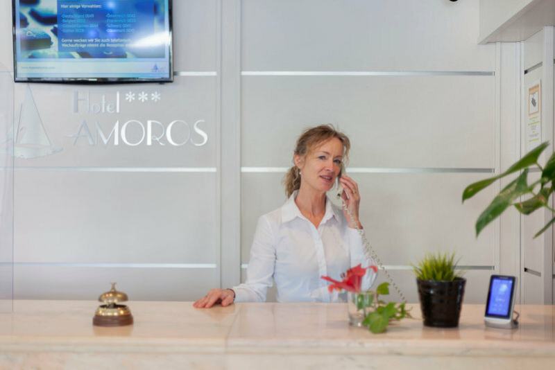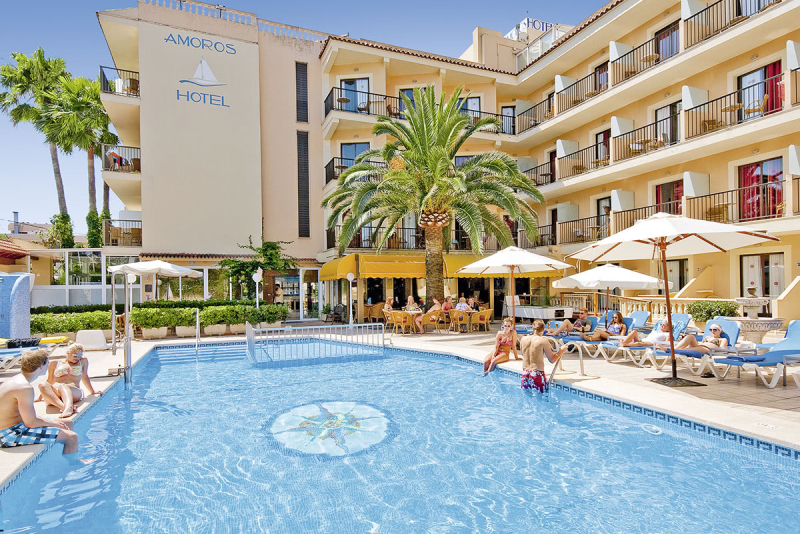 Im Amoros ist ein Pool mit Bar, Liegestühlen und Sonnenschirmen vorhanden. Ein Kinderpool für die kleinen Gäste ist integriert. Für die Unterhaltung wird den Erwachsenen ein vielseitiges Programm geboten, z. B. ein wöchentlicher Tanzabend. Im Hotel befindet sich ein Abstellraum für Fahrräder, der auch Zubehör- und Ersatzteile bereit hält. Räder können unkompliziert bei einem Partner ausgeliehen werden. Außerdem werden im Hotel auch Tenniskurse und Ausflüge mit Führer angeboten.Wellness