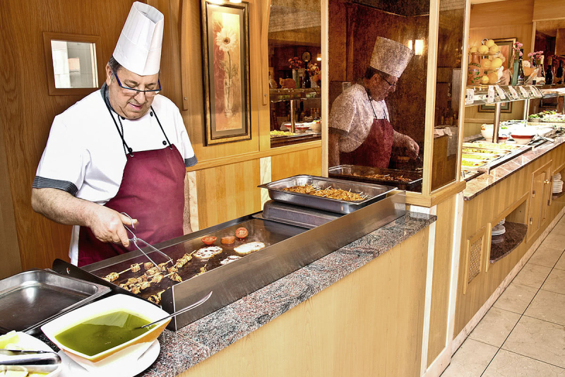 Im Hotelrestaurant wird internationale Küche in einem angenehmen Ambiente serviert. Es gibt Live-Cooking, Kinderstühle, eine Klimaanlage sowie einen gesonderten Nichtraucherbereich. Einmal wöchentlich wird ein Abendbuffet mit lokalen Spezialitäten geboten. Neben dem Restaurant hat das Hotel auch eine Bar.Sport / Unterhaltung / Pool