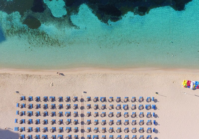 Am Strand profitiert Ihr vom leicht abfallenden Zugang ins Meer – ideal für ausgedehnte Schwimmeinheiten. Danach geht es zurück auf die Sonnenterrasse, wo Liegen und Schirme bereitstehen. Highlight: Indoor Fitness und leichte Games ergänzen Strandtage sinnvoll.