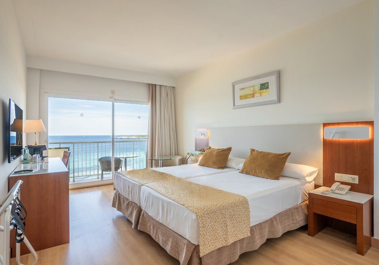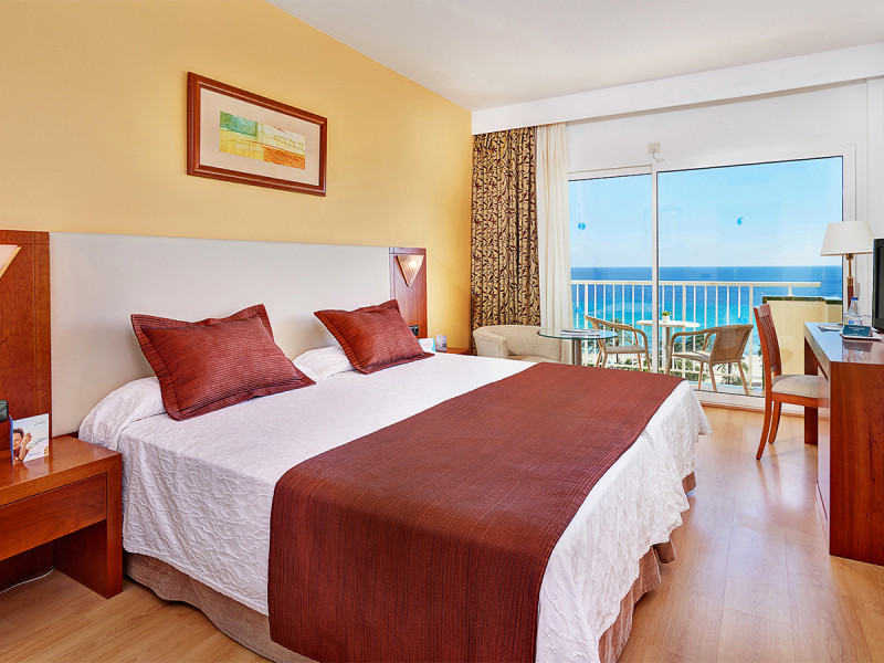Im CM Castell de Mar wohnt Ihr sprichwörtlich zwischen Meer, Promenade und lebendigem Küstenflair. Das Haus mit 12 Etagen und 230 Zimmern wirkt klar strukturiert, angenehm aufgeräumt und durchdacht organisiert. Ihr gleitet von der Lobby mit Rezeption und Salon über Leseraum und Sat.-TV-Raum hinaus auf eine Sonnenterrasse mit Liegen und Schirmen – dazwischen kurze Wege, klare Orientierung, viel Tageslicht. Highlight: Strandnahe Adresse mit direktem Promenadenbezug für eure Bade- und Spaziergänge.
