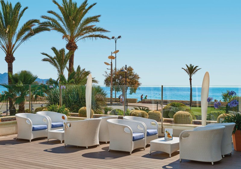 Sportliche Ziele erreicht Ihr ebenfalls unkompliziert: Zum Golfplatz sind es etwa 7.000 Meter, zu sechs Sandtennisplätzen im Hipotels Hipocampo Palace rund 300 Meter. Der Flughafen Son Sant Joan liegt in etwa 70 Kilometern Entfernung. Am Strand wie auch im Hotelbereich stehen Liegestühle und Sonnenschirme bereit, sodass Ihr zwischen Meer und Pool flexibel wechseln könnt.