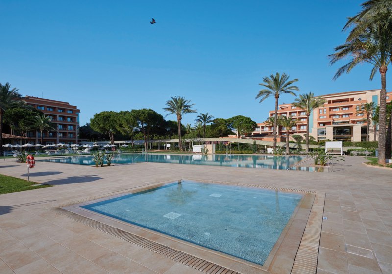 - Poollandschaft: Außenpool mit Kinderpool und Sonnenterrassen.