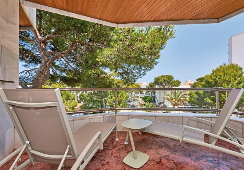 Hotel Serrano Palace verbindet die privilegierte Lage an der Bucht Son Moll mit einer klar strukturierten Hotelwelt. Ihr wohnt in einem Haus mit 152 Zimmern, vier Etagen und durchgängigem WLAN, modernisiert im Jahr 2023. Die Atmosphäre wirkt aufgeräumt und angenehm weitläufig – von der Lobby mit Bar und Terrasse bis zum Rooftop-Bereich Paradise Deck mit Infinitypool.