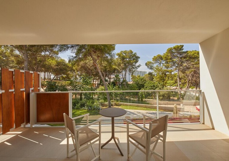 Die Lage ist ruhig und angenehm zurückgenommen. Zum Flughafen sind es etwa 20 Kilometer, zum Strand von Palmanova rund 2,5 Kilometer. In der Umgebung findet Ihr Bars, Restaurants und ÖPNV, dazu Meer und Wald als Orientierungspunkte. Diese Mischung ermöglicht kurze Wege zu lebhaften Spots und zugleich Rückzugsmöglichkeiten im Hotel.