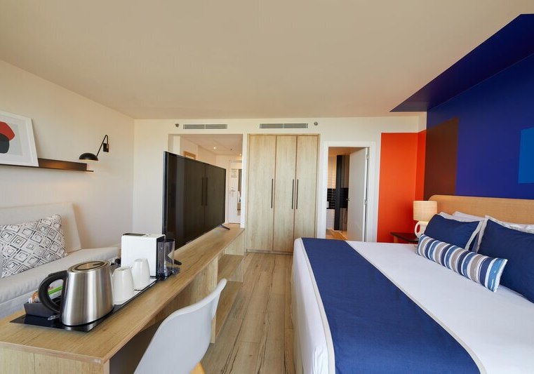 Familien fühlen sich mit Kinder- und Teenieclub gut aufgehoben, während Aktive den Fitnessraum und Kursangebote nutzen. Zwei Buffetrestaurants und mehrere Bars sorgen vom ersten Kaffee bis zum abendlichen Drink für verlässliche Begleitung. Mit 391 Nichtraucherzimmern, 24-Stunden-Rezeption und verlässlichem WLAN bleibt Euer Ablauf unkompliziert. Kategorie: offiziell vier Sterne. Highlight: Familienfokus mit Clubs und Pools, klar strukturiert und entspannt.