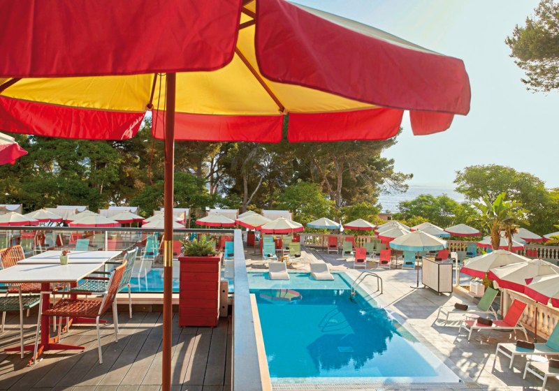 - Vier Pools: Vier Außenpools mit Schirmen, Liegen und Badetüchern inklusive.