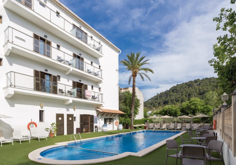 Ihre Adresse könnte prägnanter kaum sein: direkt an der Uferpromenade, von ihr nur durch den Spazierweg vom kleinen Sandstrand getrennt. Rundherum erhebt sich die Tramuntana-Bergkette – eine Kulisse, die Küstenflair und Gebirgsnähe verbindet. Highlight: Promenadenzugang vor der Tür, Strandkontakt auf kurzem Weg.