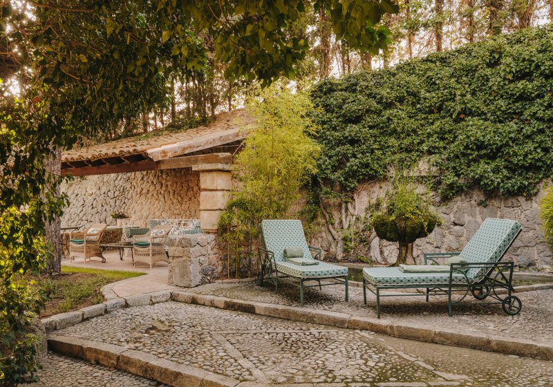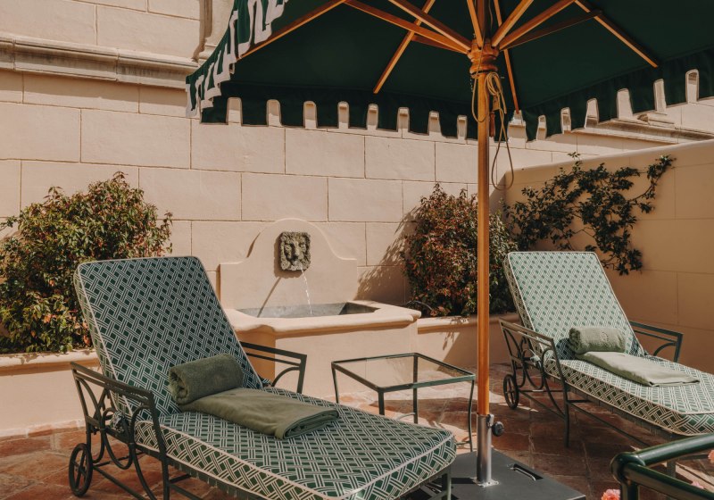 Die Finca-Architektur strukturiert das Gelände: historischer Innenhof, Gärten, Liegewiese und Sonnenterrasse schaffen unterschiedliche Zonen – hell am Pool, schattig unter Bäumen, geschützt zwischen Steinmauern. Ein Außenpool bildet das Zentrum, Valet-Parken und Concierge-Service nehmen Euch Wege ab. Highlight: Historischer Innenhof und privater Weinberg prägen das Gefühl von Ort und Herkunft.