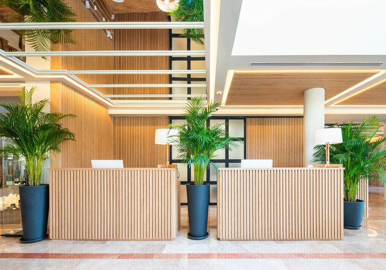 Die öffentlichen Bereiche wirken aufgeräumt und einladend: Lobby mit zwei Aufzügen, Sonnenterrasse für Licht und Luft, Fitnessstudio für eine kurze Einheit zwischendurch. Abends rundet Ihr den Tag in der Sky‑Bar oder einer der Hotelbars ab, während Ihr den Blick über die Bucht teilt. Highlight: Familienfreundliches Strandhotel mit Außenpool und Kinderbecken für flexible Tagesgestaltung.