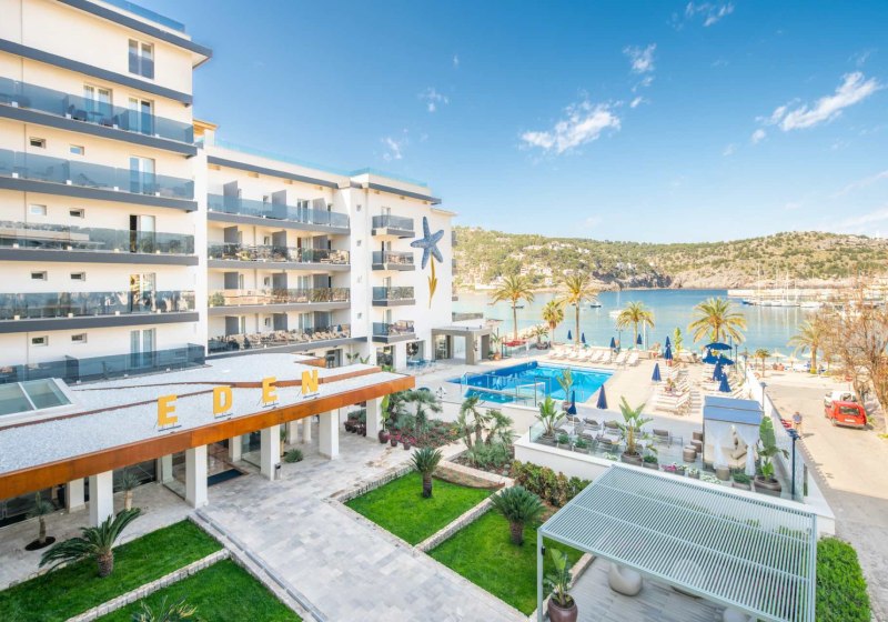Im Hotel Eden Sóller wohnt Ihr direkt am Sandstrand von Puerto de Sóller und habt das Meer buchstäblich vor der Tür. Das 4‑Sterne‑Haus verbindet Strandhotel-Komfort mit familienfreundlicher Ausrichtung: Außenpool mit integriertem Kinderbecken, kostenlose WLAN‑Verbindung und eine 24‑Stunden‑Rezeption geben Eurem Aufenthalt Struktur und Spielraum. Highlight: Direkte Strandlage erleichtert entspannte Tage im Urlaub ohne Wege.