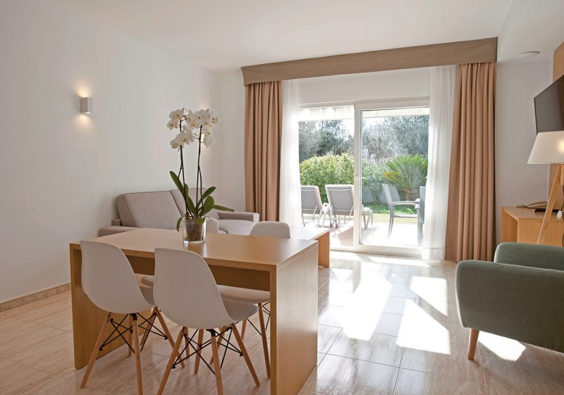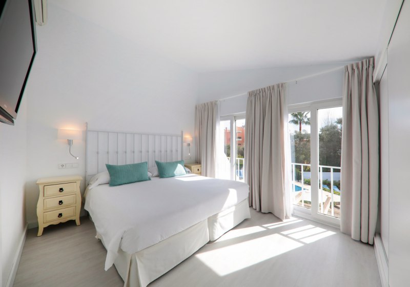 Im La Pérgola Aparthotel wohnt Ihr in einer gepflegten Apartmentanlage in Puerto Andratx, die Euch viel Raum für entspannte Tage und flexible Routinen schenkt. 92 Apartments, 8 Bungalows und 4 Villen bilden ein klar strukturiertes Ensemble mit zwei Außenpools, davon einer exklusiv für Villen-Gäste. Die Atmosphäre wirkt unaufgeregt, mit ruhigen Ecken auf Terrassen und im Garten.