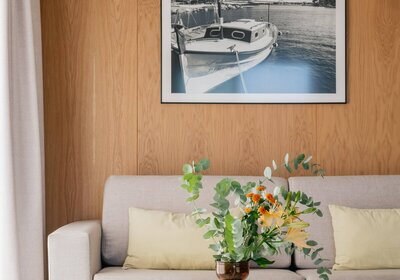 Design-Zimmer bieten rund 29 Quadratmeter, ein Queen-Size-Bett, Parkettboden und eine Regendusche. In der Juniorsuite entspannt Ihr zusätzlich im Sitzbereich. Telefon und WLAN verbinden Euch zuverlässig, während das zurückhaltende Design Raum für eigene Routinen im Urlaub lässt.