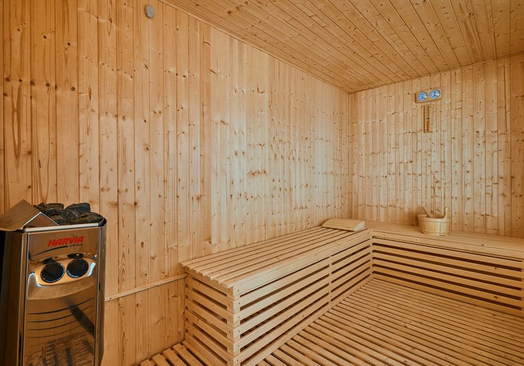 - Sauna & Dampfbad: Sauna, Türkisches Bad und Fitnessraum ergänzen den Erholungsbereich.