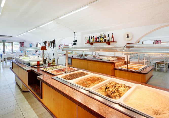 Das Haus bietet eine Lobby mit Rezeption und bequemen Aufenthaltsräumen, dazu Terrassenflächen, Garten und Aussenmöbel. Zwei Aussenpools strukturieren den Tag: ein Adults-only-Pool für Ruhe, ein Hauptpool mit Sonnenliegen und Schirmen. WLAN ist kostenfrei, Parkplätze stehen je nach Verfügbarkeit bereit. Highlight: Klare Wege – übersichtliche Bereiche, kurze Distanzen, entspannte Nutzung.