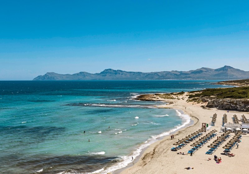 Ihr urlaubt auf Mallorca in Can Picafort, unmittelbar am Meer in der Bucht Son Bauló und am Landschaftsschutzgebiet Son Real. Die Strandpromenade führt Euch in etwa 800 Metern ins Ortszentrum. Am Hotel hält die Minibahn, praktische Stopps für kurze Wege. Bars und Restaurants liegen rund 5 Meter entfernt, Einkaufsmöglichkeiten ebenso nah – die Wege bleiben angenehm kurz.