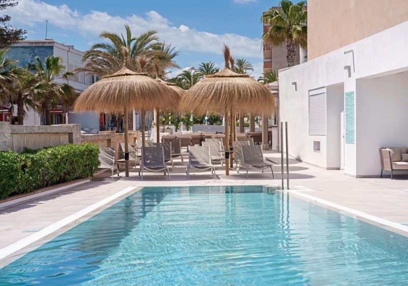 Im Caprice Concord Hotel & Spa wohnt Ihr direkt an der Bucht Son Bauló, angrenzend an das Landschaftsschutzgebiet Son Real. Die Stimmung ist lässig-maritimes Strandleben, mit kurzen Wegen vom Haus zur Promenade und zum Meer. Ein Außenpool mit Sonnenterrasse, Liegen und Schirmen bildet den ruhigen Mittelpunkt. Das offiziell mit 4 Sternen klassifizierte Haus wurde 1968 erbaut und 2006 renoviert, bietet WLAN im gesamten Hotel und eine 24‑Stunden-Rezeption.