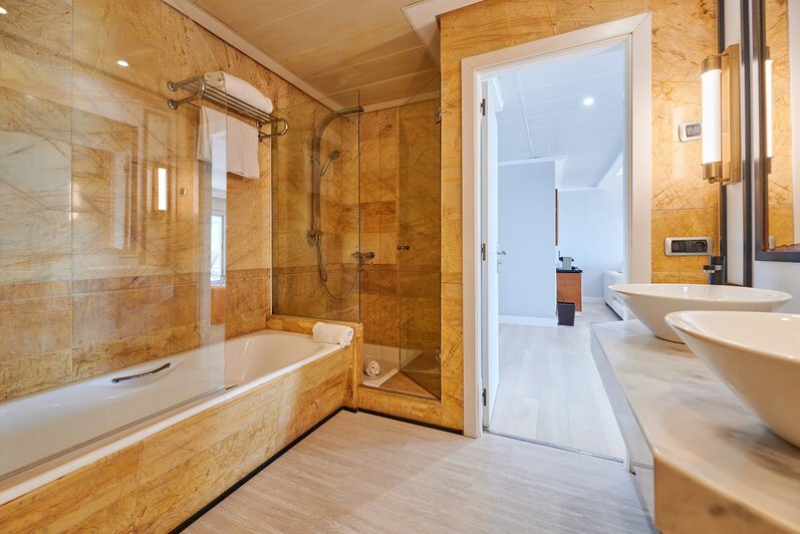 Das Hotel bietet eine große Auswahl an Gastronomiealternativen mit drei Restaurants, darunter ein Buffetrestaurant, ein Grillrestaurant und ein Gourmetrestaurant, sowie zwei Bars. Die Verpflegungsarten umfassen Übernachtung mit Frühstück, Halbpension, die Frühstück und Abendessen beinhaltet.Ausstattung