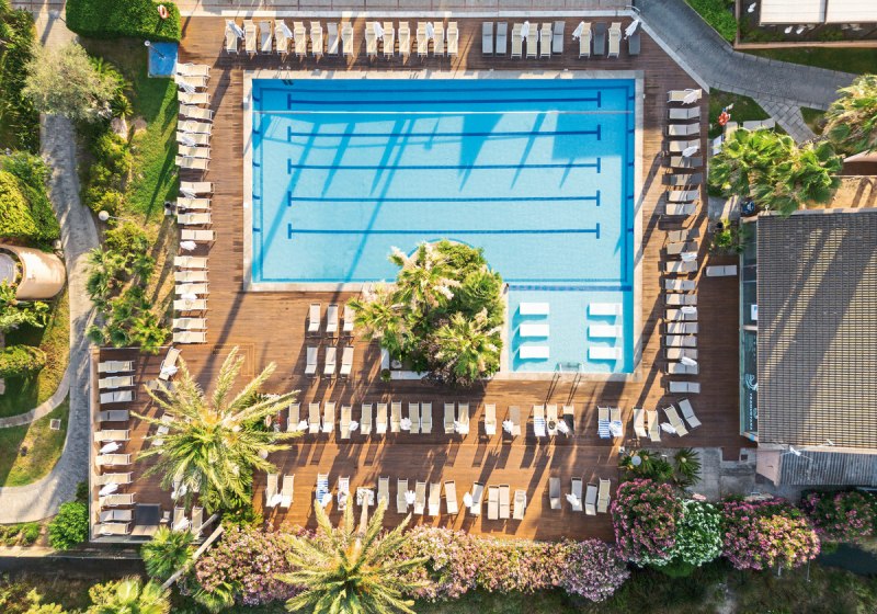- Poolquartett: Vier Außenpools, einer davon beheizbar, plus Sonnenterrassen.