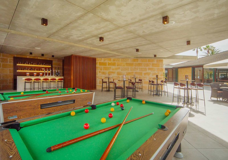 - Court & Track: Vier Kunstrasen-Tennisplätze plus Fitnessstudio und Aerobicräume.