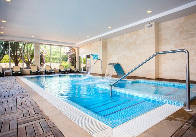 - Innenbad beheizt: Hallenbad mit Hydromassagebecken ergänzt Pool und Sonnenterrasse.