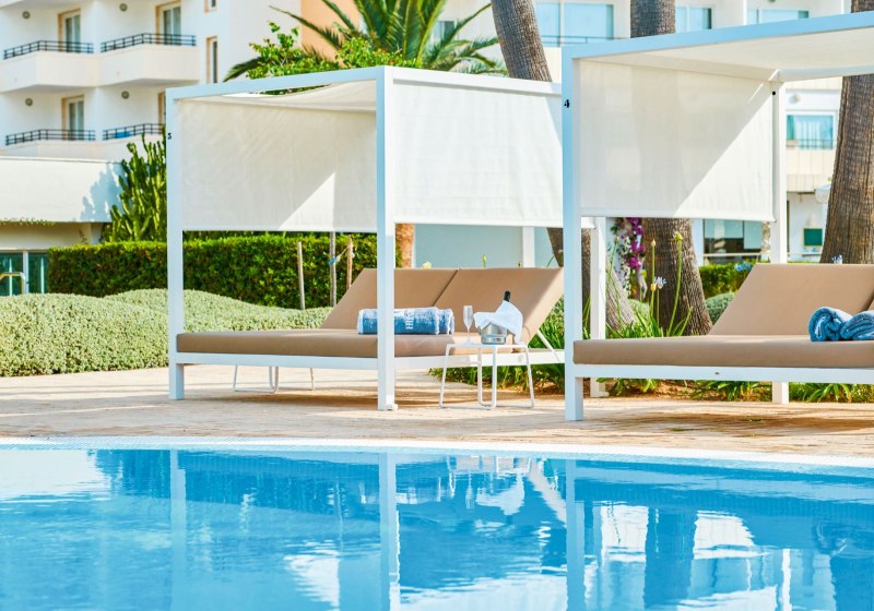 - Pool & Terrasse: Außenpool 323 m² mit Sonnenterrasse, Liegen und Schirmen.