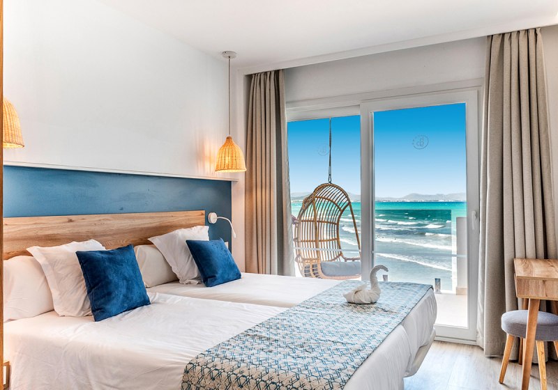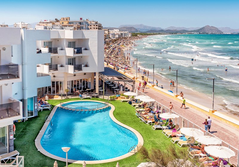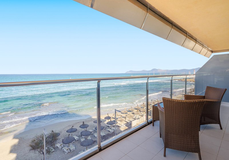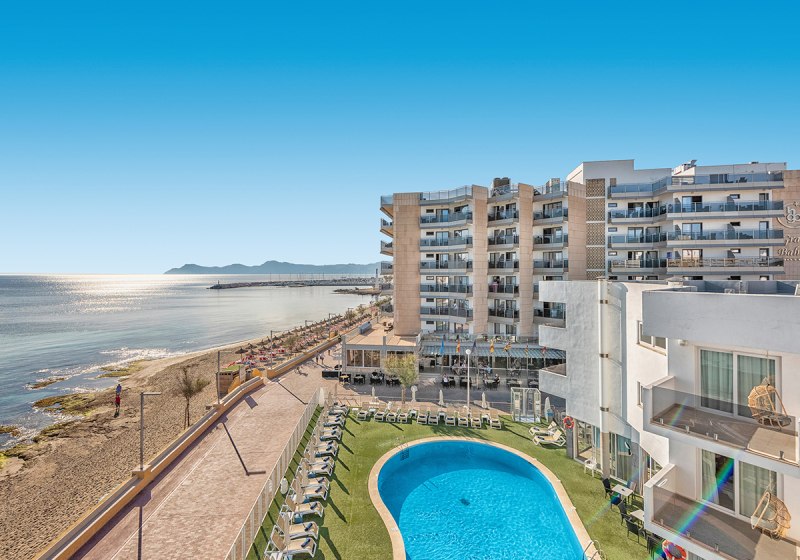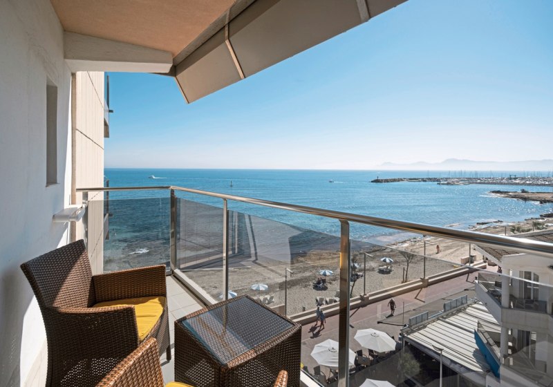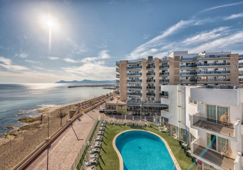 Im THB Gran Bahía wohnt Ihr direkt an der Uferpromenade von Ca'n Picafort, mit dem Sandstrand nur durch die Promenade getrennt. Die Atmosphäre wirkt lebhaft und gleichzeitig gelassen: kurze Wege, klare Strukturen, viel Tageslicht. Ihr startet den Tag mit Meerluft, kommt mittags bequem ins Zentrum und schließt den Abend auf der Terrasse mit Blick auf das Treiben ab. Highlight: Direkte Strandlage an der Promenade mit kurzem Weg ins Zentrum.