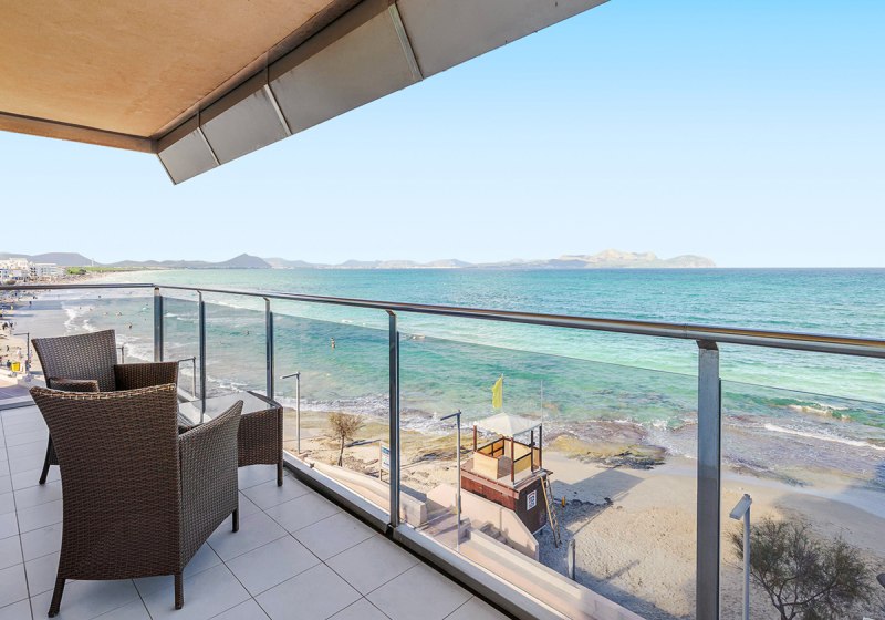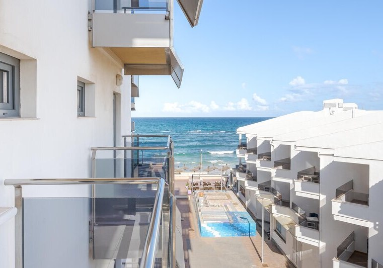 Ihr residiert in Ca'n Picafort auf Mallorca, direkt am Sandstrand und nur durch die Uferpromenade getrennt. Das Zentrum liegt in Gehweite, konkret etwa 200 Meter entfernt; der Jachthafen Puerto de Ca'n Picafort erreicht Ihr nach rund 350 Metern. Die Lage ist belebt und verkehrsgünstig, mit Hauptstraße und Bushaltestellen in der Nähe. Highlight: Kurze Distanzen zu Strand, Zentrum und Hafen.