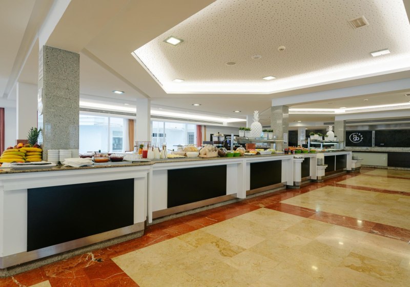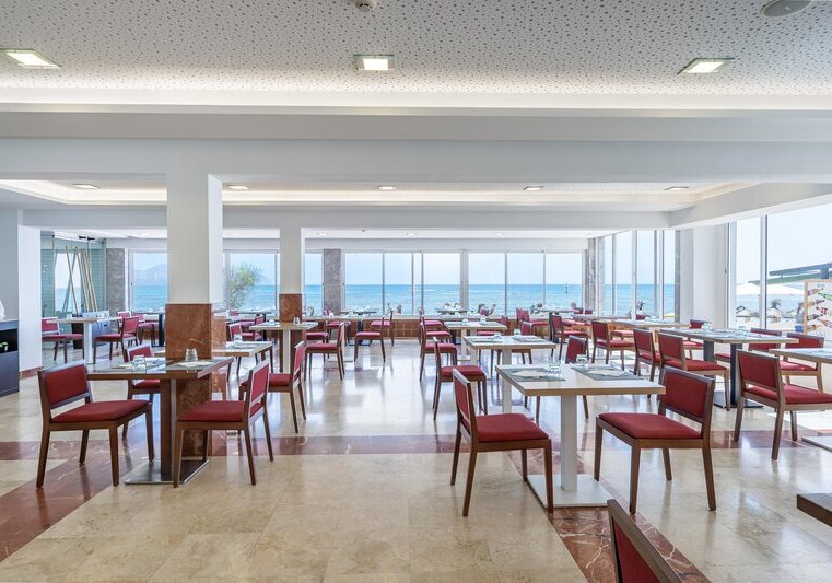 Ihr esst im Buffetrestaurant mit Außenterrasse – ideal, wenn Ihr die Meeresbrise auch beim Abendessen genießen wollt. Die Verpflegungsoptionen reichen von Frühstück bis Halbpension mit Abendessen; Live-Kochen bringt frische Zubereitung an die Stationen. Highlight: Buffetrestaurant mit Terrasse für Mahlzeiten an der frischen Luft.