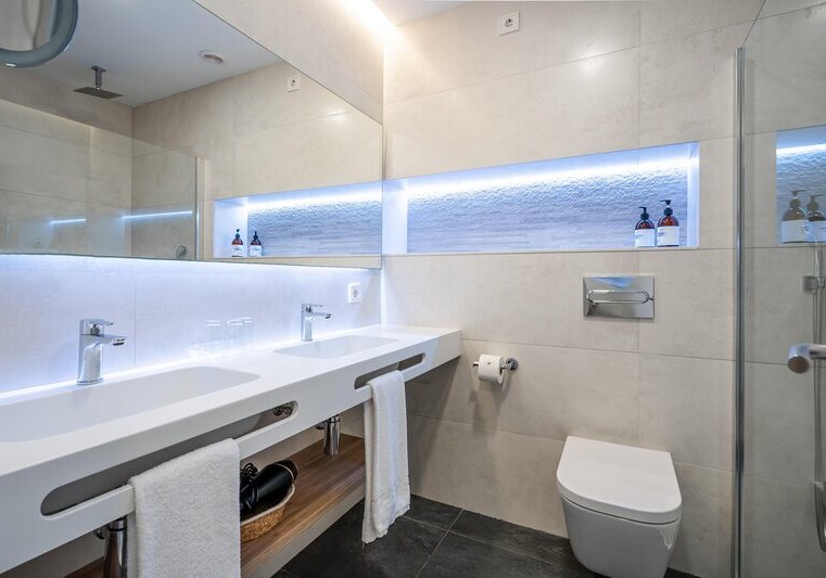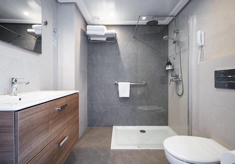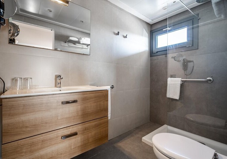- Kernkomfort: Dusche, Klimaanlage, TV, Telefon, kleiner Kühlschrank, Mietsafe.