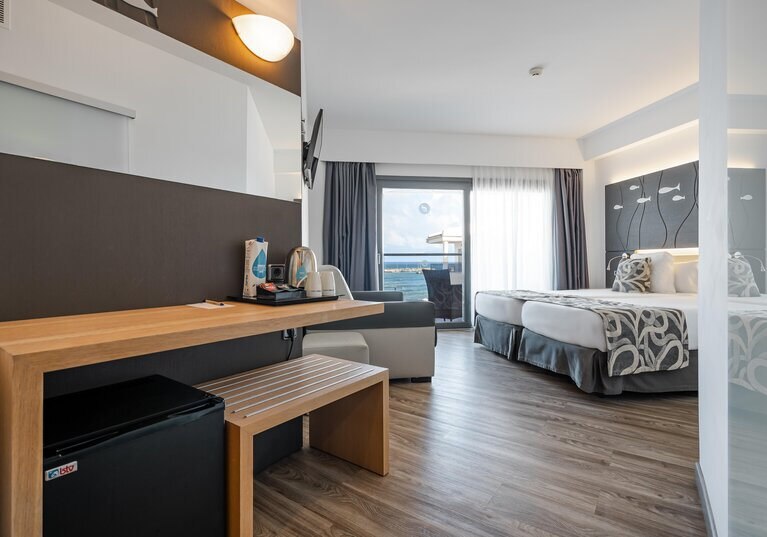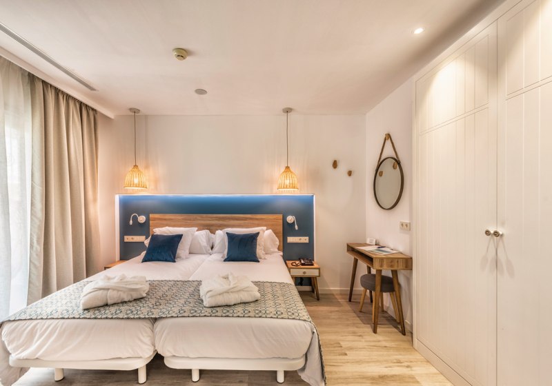 Die Zimmer sind funktional ausgestattet: Dusche/WC, Föhn, Klimaanlage, TV, Telefon, kleiner Kühlschrank und Mietsafe gehören dazu. Ein Balkon erweitert den Wohnraum ins Freie – ideal für eine kurze Pause zwischen Strand und Abendessen. Doppelzimmer messen etwa 16 bis 19 Quadratmeter, Einzelzimmer circa 14 Quadratmeter. Highlight: Balkon in allen Zimmern für private Außenmomente.