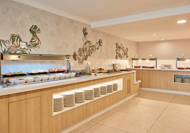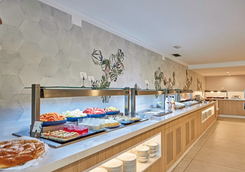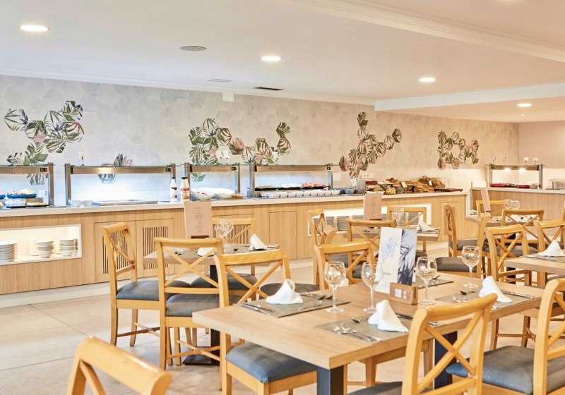 Im Buffetrestaurant esst Ihr auf der Terrasse mit Meerblick – ein klarer Pluspunkt für den Start in den Tag und entspannte Abende. Die Küche bedient unterschiedliche Vorlieben, inklusive vegetarischer Kost. Angebotene Verpflegungen reichen von Frühstück bis Halbpension sowie Mittagessen und Snacks.
