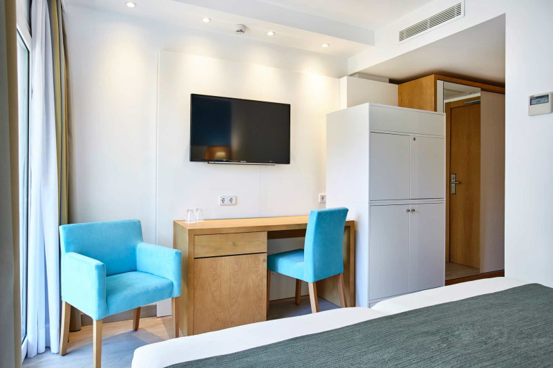 • Klimaanlage • Balkon (je nach Zimmerkategorie) • Haartrockner • Minikühlschrank • Safe • Fernseher (Sat-TV) • WiFi • Gartenblick • Terrasse