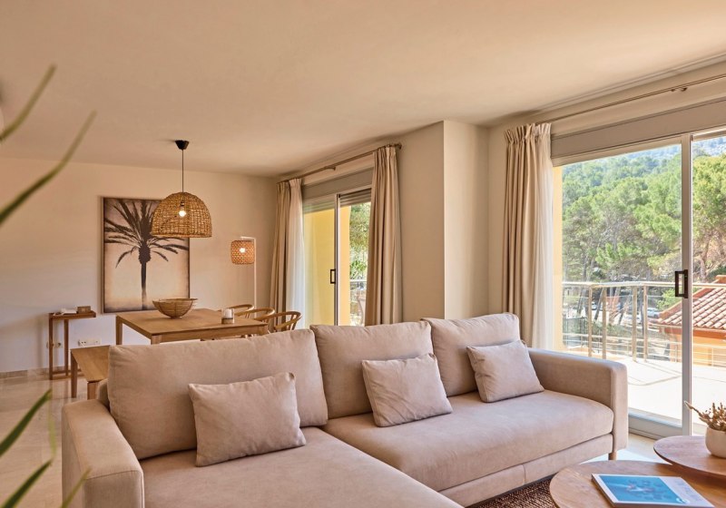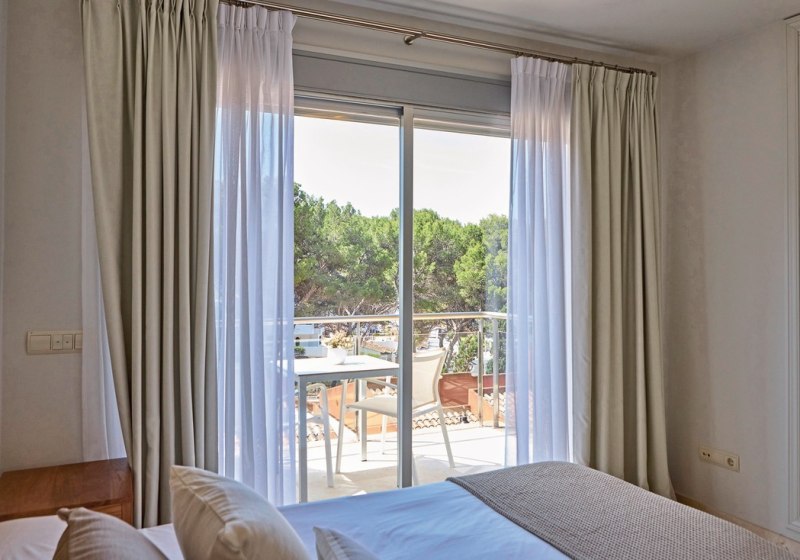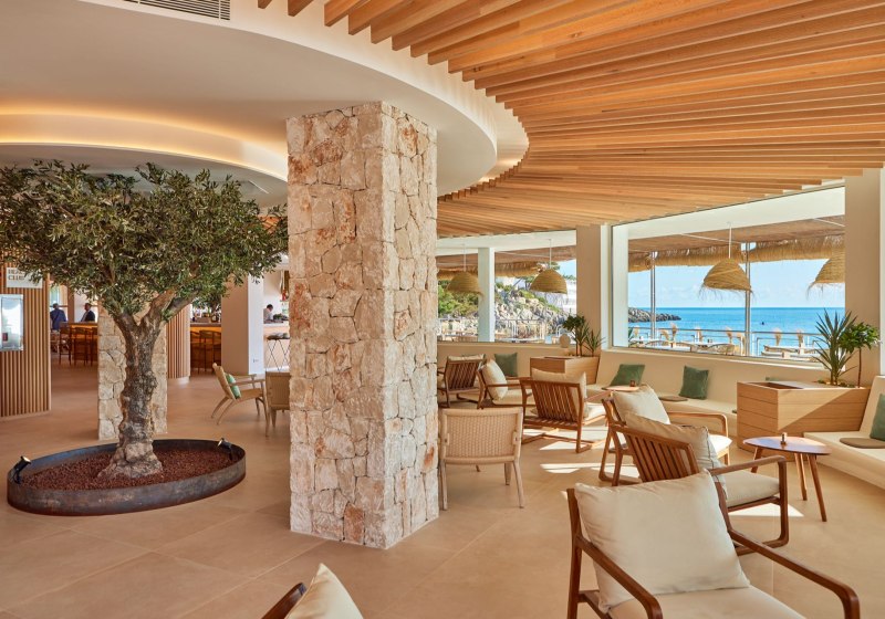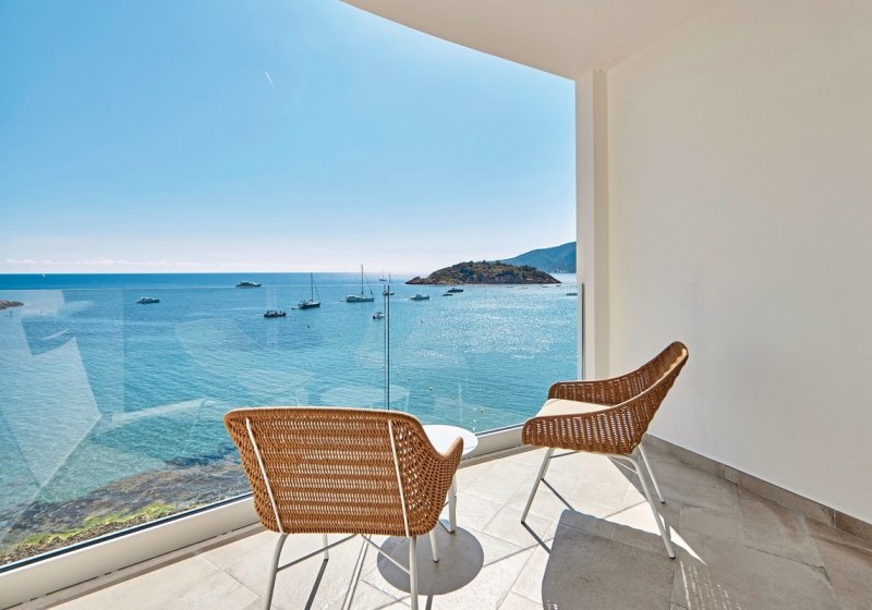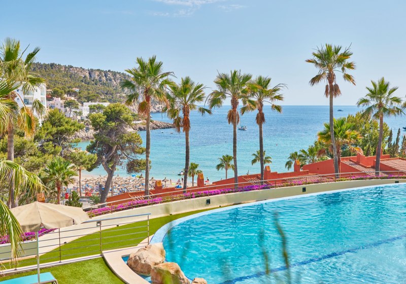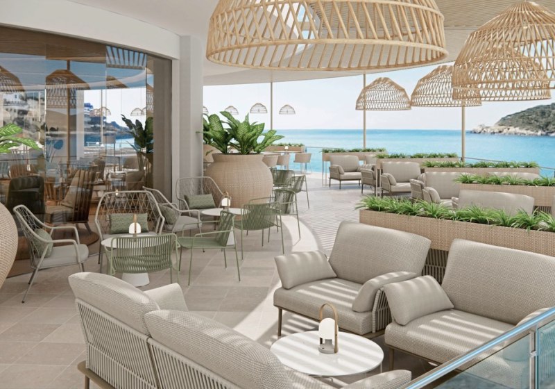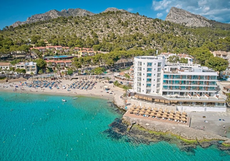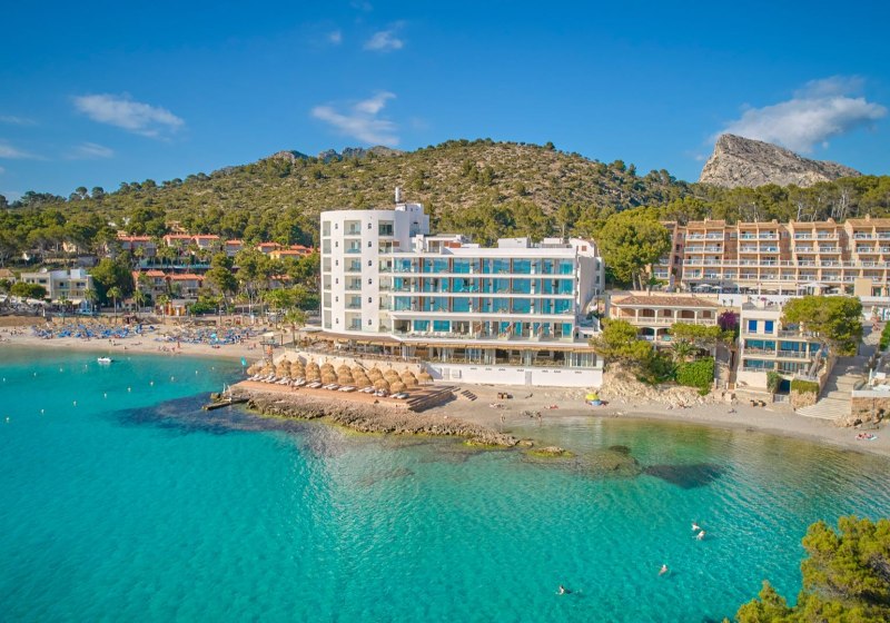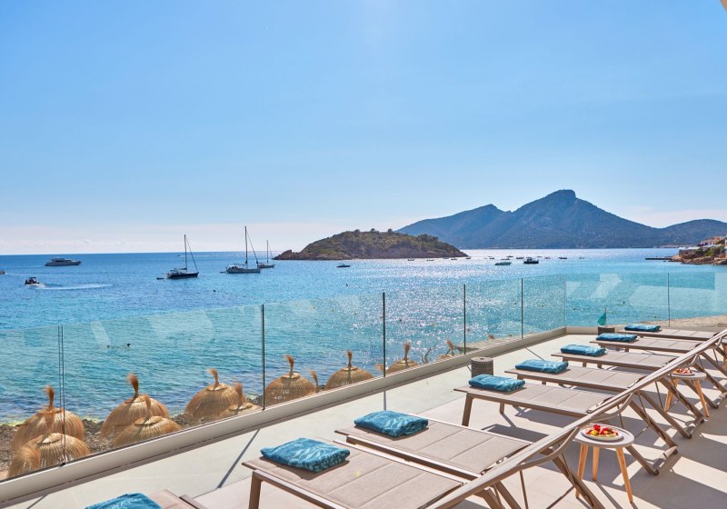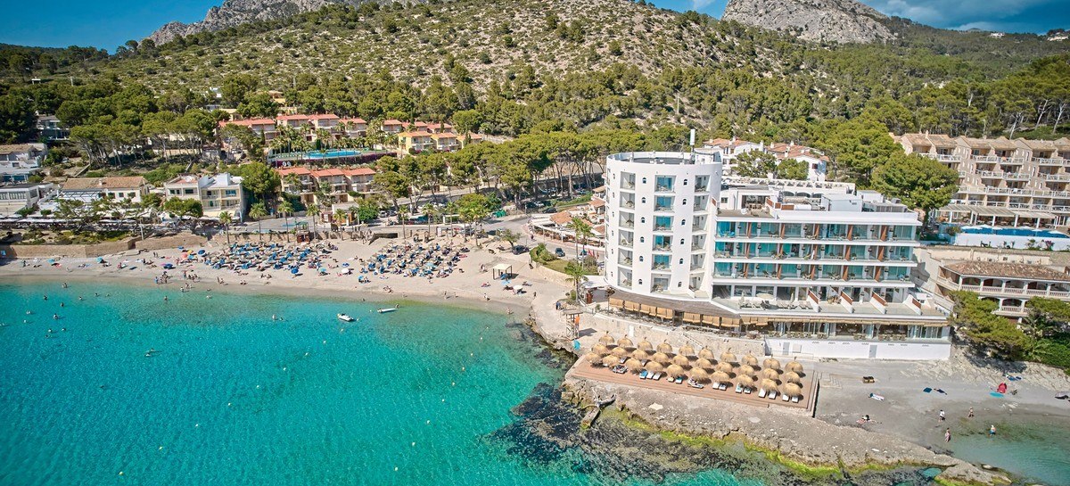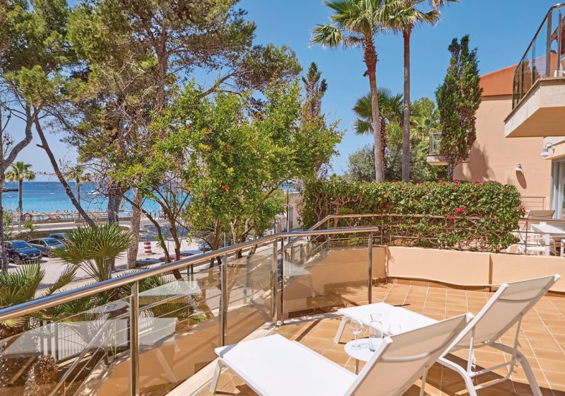 Im Universal Hotel Aquamarin wohnt Ihr direkt an einer kleinen Sandbucht im beschaulichen Sant Elm. Das Haus verbindet entspanntes Strandgefühl mit klar strukturierten Bereichen – vom luftigen Empfang über die Sonnenterrasse bis zu den Beach Houses. Highlight: Direkte Badebucht mit kurzer Distanz ins Zentrum, angenehm unkompliziert.