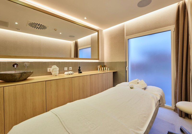 Nach dem Strand wechselt Ihr in den ruhigen Innenbereich mit Innenpool, Sauna und Hamam. Für zusätzliche Regeneration stehen Massagen und kosmetische Behandlungen bereit. Eine Chillout-Terrasse verlängert die Entspannung ins Freie. Highlight: Kompaktes Spa-Set-up mit Pool, Sauna und Hamam.