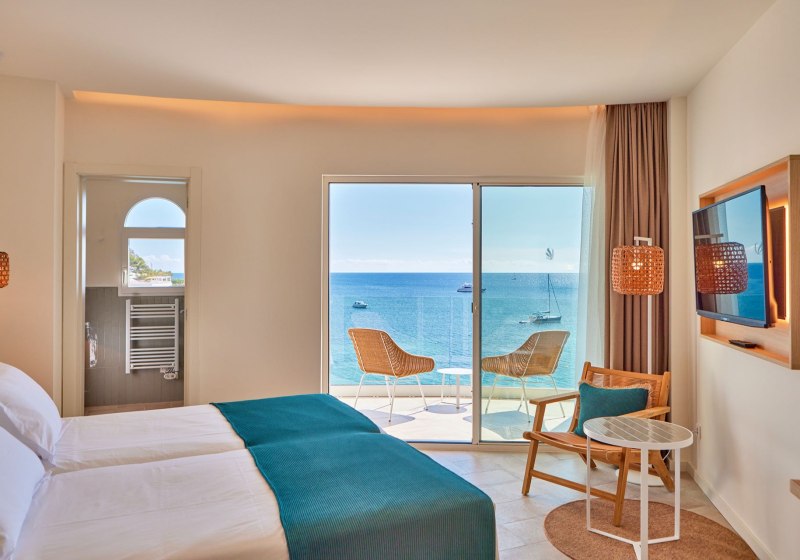 Die Doppelzimmer bieten Bad/Dusche/WC, Föhn, Telefon, Sat-TV, Mietsafe, Klimaanlage, Minibar, Kaffeemaschine sowie kostenloses Wasser und einen Balkon auf etwa 20 Quadratmetern. Highlight: Superior-Zimmer mit frontalem Meerblick, Bademantel und Slipper für ein Plus an Komfort.