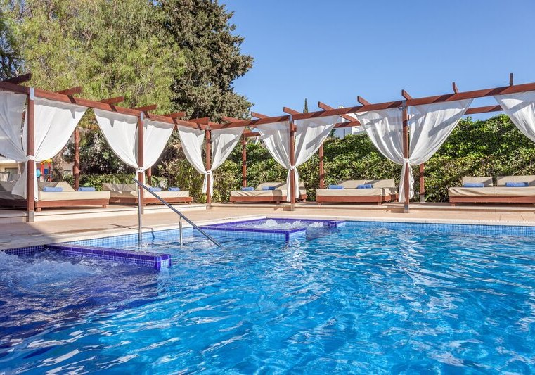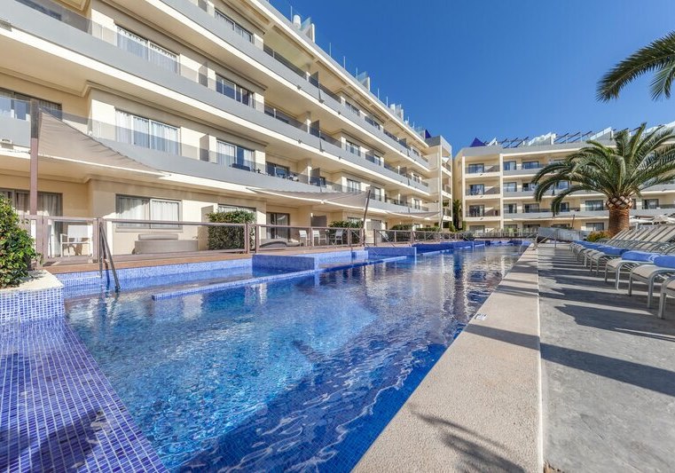Die gemeinschaftlichen Bereiche wirken klar strukturiert und einladend, von der 24-Stunden-Lobby bis zu sonnigen Terrassen. Kurze Wege zum Strand Son Matias machen Euren Strandtag unkompliziert. Serviceleistungen wie kostenfreies WLAN und durchgängige Rezeption sorgen für entspannte Abläufe. Highlight: Penthouse-Suiten im Duplexstil mit Dachterrasse und Whirlpool.