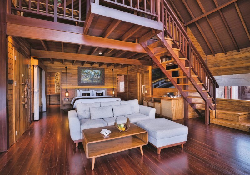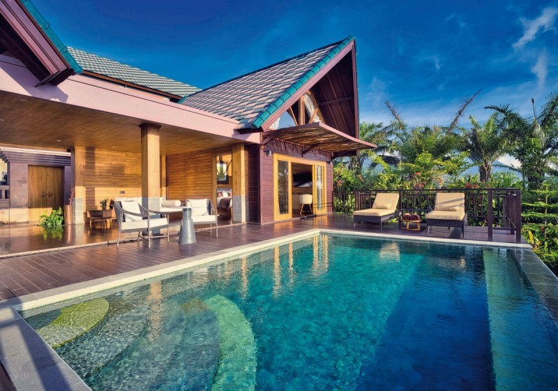 • Villenkomfort: Freistehende Villen mit Terrasse, Wanne, Regenduschen, Außenduschen.
