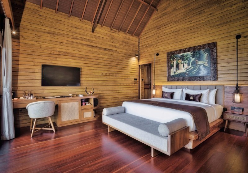 Alle Villen bieten Bad mit freistehender Wanne, Regendusche und zusätzlicher Außendusche, dazu Bademantel, Haartrockner, Flachbild-TV, Telefon, Bluetooth-Lautsprecher, WLAN, Safe, Minibar, Klimaanlage sowie Kaffee/Tee. Jede Villa verfügt über eine private, möblierte Terrasse – der Blick ins Grün begleitet Euren Tagesablauf.