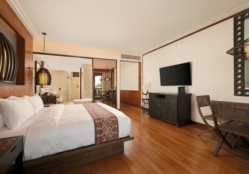 Im Restaurant probiert Ihr landestypische Küche, klar auf Bali verwurzelt. Dazu passen Kindermenüs, wenn Ihr mit Familie reist. Die Weinbar begleitet den Abend genussvoll, während die Loungebar tagsüber ruhige Pausen ermöglicht. Highlight: Lokale Küche mit passender Bar-Auswahl für unterschiedliche Tagesmomente.