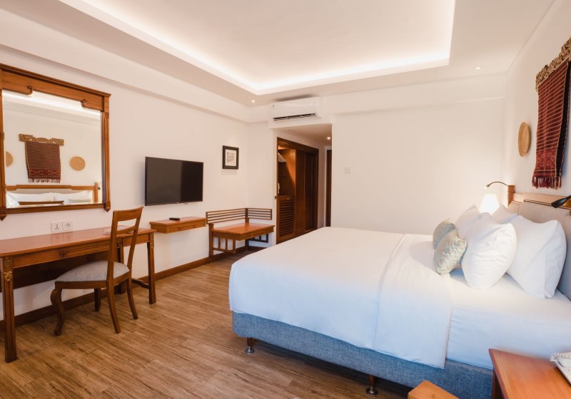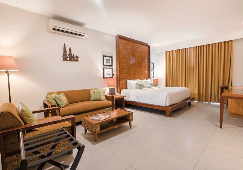 Ramayana Candidasa Beach Resort kombiniert kurze Wege zum Strand mit einer kompakten, gut ausgestatteten Anlage. Pool mit Kinderbecken, Sonnenterrasse und kostenfreies WLAN schaffen eine verlässliche Basis für strukturierte Tage zwischen Wasser, Ruhe und kleinen Ausflügen.