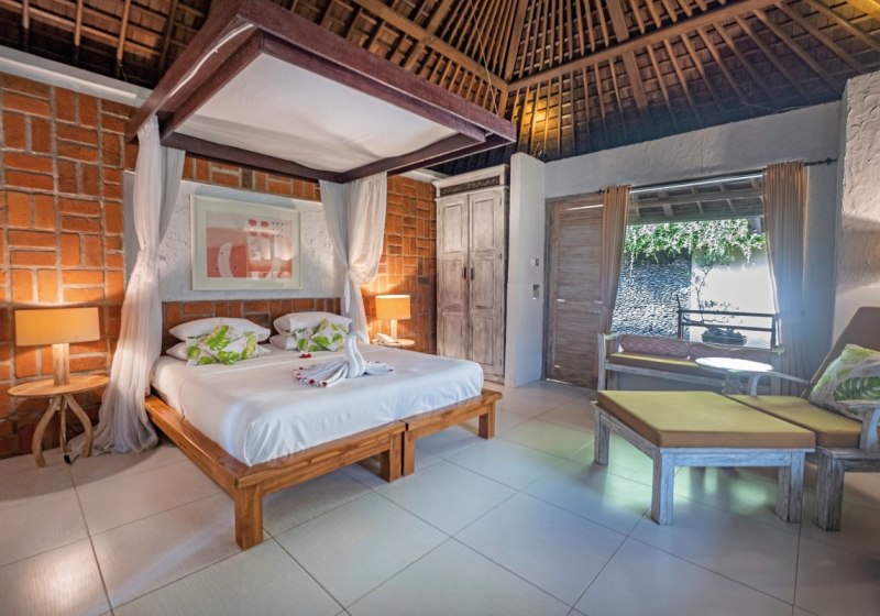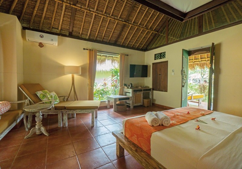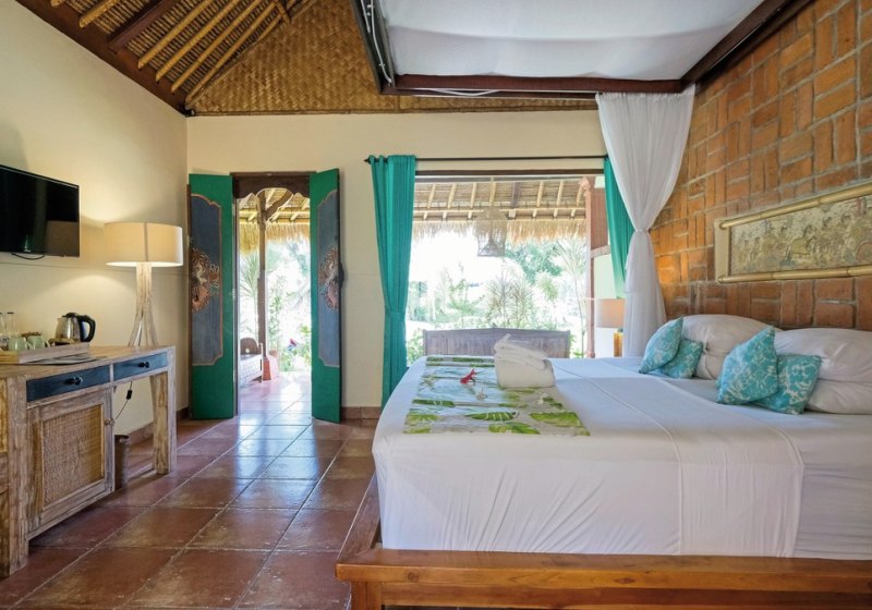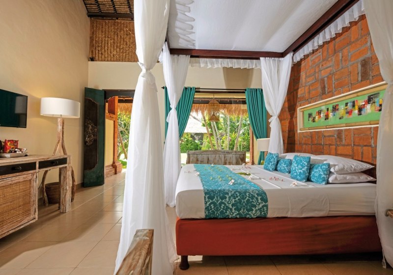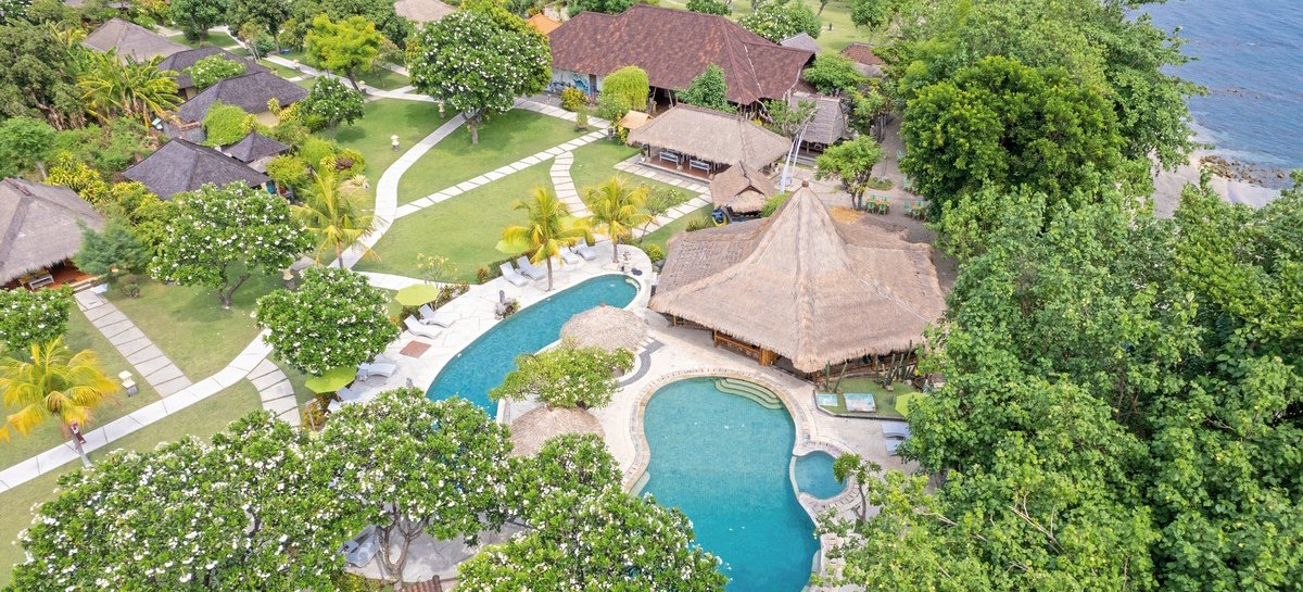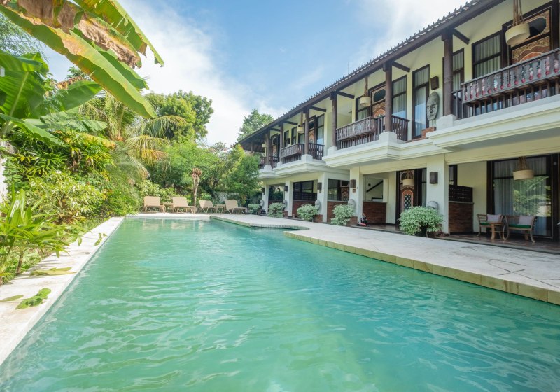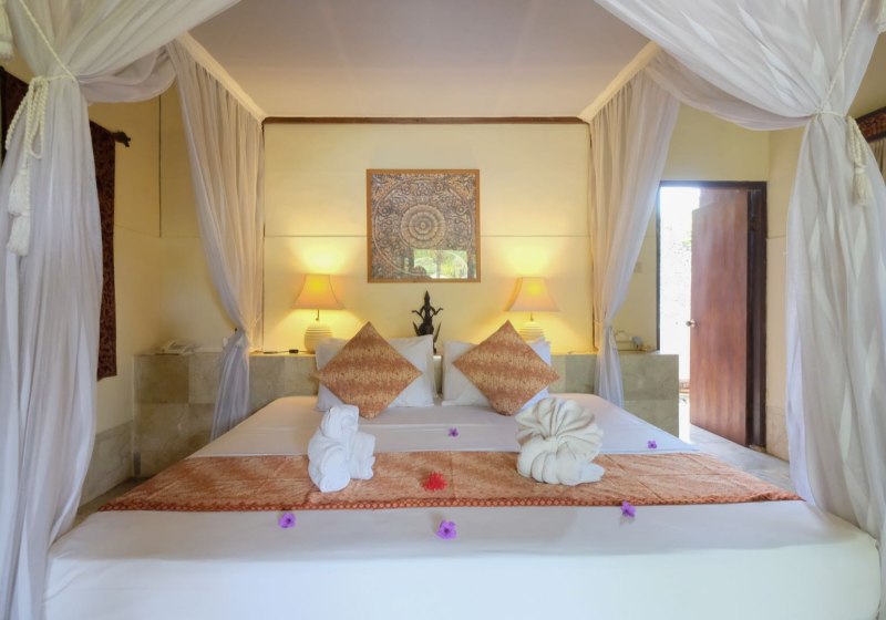 Im Taman Sari Bali Resort & Spa wohnt Ihr in einem überschaubaren Resort mit 45 Zimmern, eingebettet in tropisches Grün nahe der Küste von Singaraja im Norden Balis. Die Wege sind kurz, der Strand liegt fußläufig, und WLAN nutzt Ihr in der gesamten Anlage kostenfrei. Abends begleitet Musik Euren Tag dezent ausklingend.