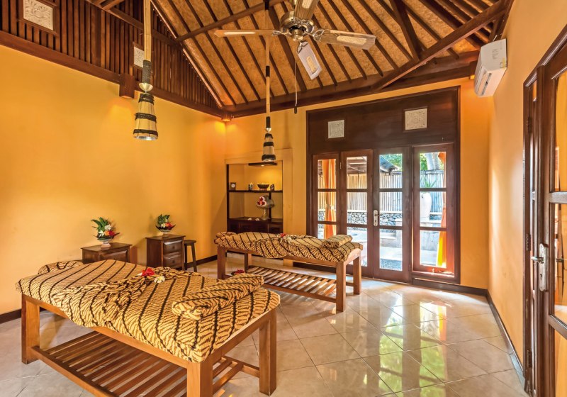 Im Spa bucht Ihr Massagen und Anwendungen gegen Gebühr. Der Außenpool und der separate Kinderpool ergänzen die ruhigen Stunden unter der balinesischen Sonne. Wer strukturierte Auszeit schätzt, nutzt das Wellness-Center mit Angeboten wie Sauna, Dampfbad und Whirlpool.